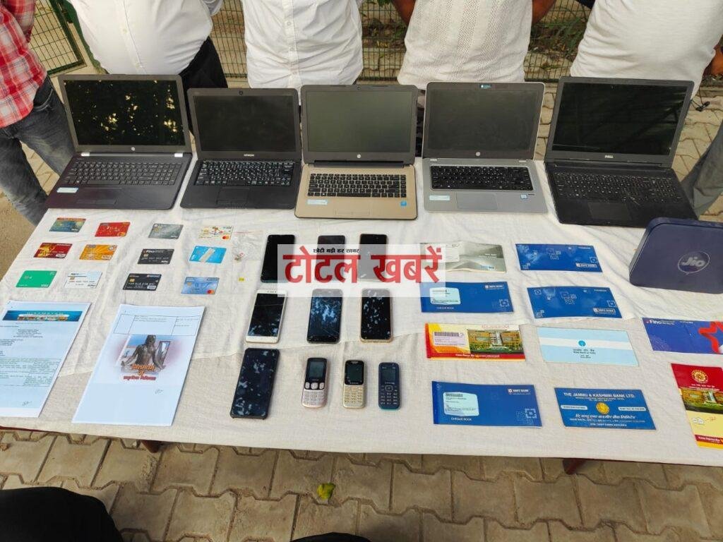 • 5 लैपटॉप, 10 मोबाइल फोन, 19 सिम कार्ड, 12 डेबिट कार्ड, 4 चेक बुक, 6 पासबुक और 1 वाईफाई मॉडम बरामद। बैंक खाते में रू. 1,66,000/- जमा।