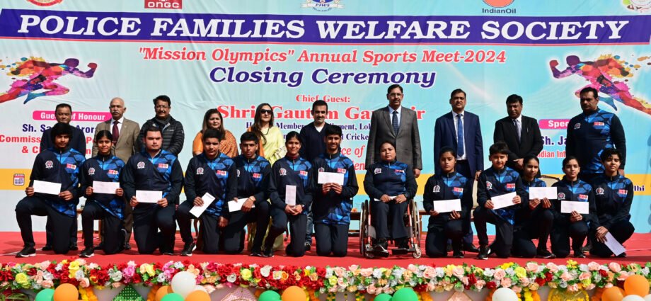 स्पोर्ट्स मीट का समापन समारोह न्यू पुलिस लाइन्स, किंग्सवे कैंप, नई दिल्ली में आयोजित किया गया। श। गौतम गंभीर, संसद सदस्य, लोकसभा, पद्मश्री, अर्जुन पुरस्कार विजेता और पूर्व अंतरराष्ट्रीय क्रिकेट खिलाड़ी इस कार्यक्रम में मुख्य अतिथि के रूप में शामिल हुए, उनके साथ सम्मानित अतिथि के रूप में श्री थे। संजय अरोड़ा, पुलिस आयुक्त, दिल्ली, और श्री। पूर्व अंतरराष्ट्रीय निशानेबाजी स्वर्ण पदक विजेता, पद्मश्री और अर्जुन पुरस्कार विजेता जसपाल राणा विशेष अतिथि के रूप में शामिल हुए। अन्य सम्मानित अतिथियों में श्री शामिल थे। वी.पी. ओएनजीसी से सिंह और श्री. आईओसी से कैलाश सिंह पांगटे, श्रीमती। रितु अरोड़ा, अध्यक्ष पीएफडब्ल्यूएस, श्रीमती। ज्योति चहल, श्री. संजय कुमार, एसपी सीपी/कल्याण और श्री. कुमार ज्ञानेश, डीसीपी/कल्याण इस अवसर पर उपस्थित थे।