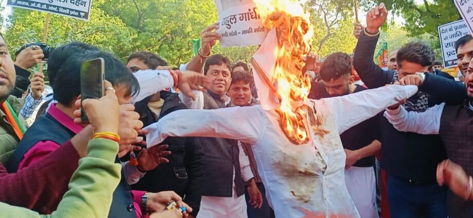*भाजपा ओबीसी मोर्चा द्वारा जंतर मंतर पर प्रदर्शन कर राहुल गांधी का पुतला फूंक जताया विरोध