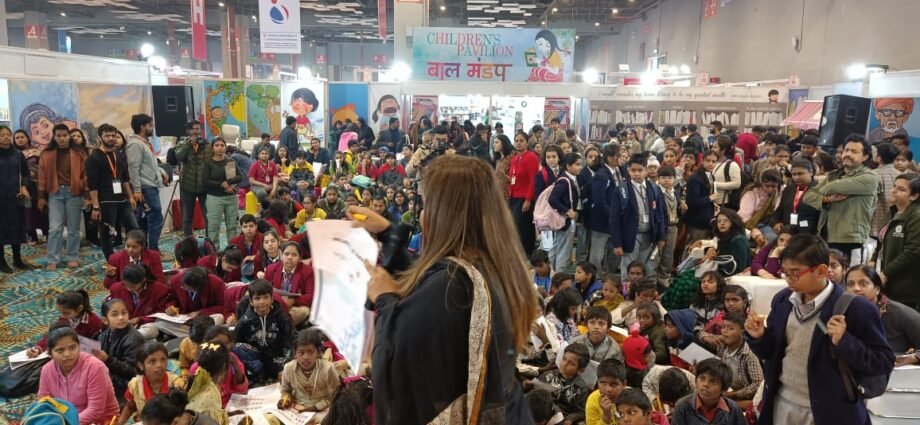 बच्चे, बड़ों सभी पुस्तकों के प्रति उत्साहित थे। पुस्तक मेले के अलग—अलग हॉल सभी को आकर्षित कर रहे थे। हॉल 3 में बालमंडप में बच्चों की दिन भर रौनक रही, जहाँ बच्चों के लिए तरह—तरह की रचनात्मक और मनोरंजक गतिविधियाँ आयोजित की जा रही हैं। पहले दिन इस मंच पर कहानीवाचक जयश्री सेठी ने प्रसिद्ध लेखिका कांता ग्रेबाँ की ‘बारास्ता तरबूज’ कहानी सुनाई। डाकरूम से मुस्कान गुप्ता ने बच्चों को एन्वेलप डेकोरेशन और पत्र—लेखन की कला सिखाई। कैलीग्राफर रघुनीता गुप्ता सुलेख के माध्यम से भारतीय लिपियों के ज्ञान से परिचित करवाया।