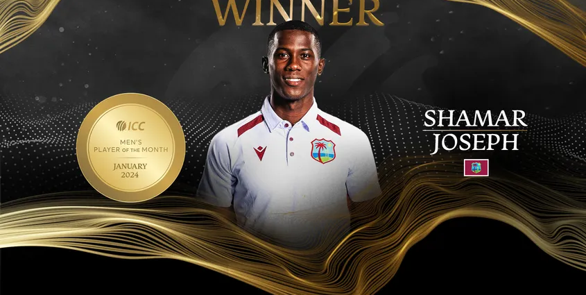 ऑस्ट्रेलिया में अपनी नाटकीय टेस्ट सीरीज़ में वेस्टइंडीज के लिए सनसनीखेज शुरुआत करने के बाद शमर जोसेफ ने पहली बार ICC मेन्स प्लेयर ऑफ़ द मंथ के ताज का जश्न मनाया।