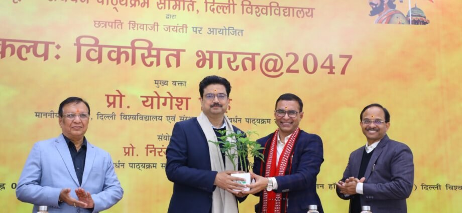 दिल्ली विश्वविद्यालय के कुलपति प्रो. योगेश सिंह ने कहा कि 2047 तक देश को विकसित भारत बनाने के लिए विश्व स्तरीय कंपनियाँ खड़ी करनी होंगी। एक-एक ट्रिलियन डालर के कम से कम 100 ब्रांड भारत से होने चाहियें। प्रो. योगेश सिंह ‘विकसित भारत @2047’ अभियान के तहत दिल्ली विश्वविद्यालय की मूल्य संवर्धन पाठ्यक्रम समिति द्वारा छत्रपति शिवाजी जयंती के उपलक्ष्य में आयोजित ‘संकल्प : विकसित भारत@2047’ विषयक कार्यक्रम में बतौर मुख्य वक्ता संबोधित कर रहे थे। प्रो. योगेश सिंह ने कहा कि नए भारत की बदलती तस्वीर हमारे सामने है। नया भारत अपनी गलतियां दोहराने वाला भारत नहीं है।