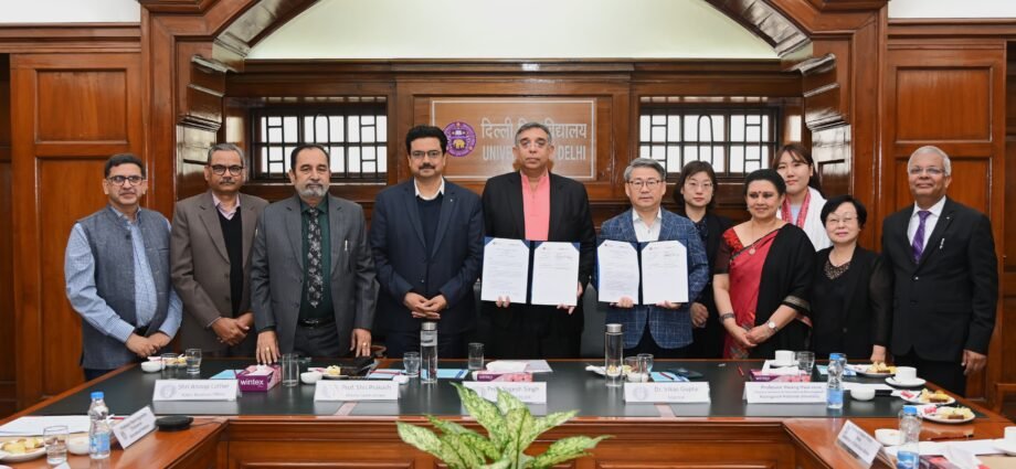 दिल्ली विश्वविद्यालय और क्यूंगपुक नेशनल यूनिवर्सिटी, कोरिया के बीच दोनों विश्वविद्यालयों में कोरियाई भाषा शिक्षा को बढ़ावा देने के लिए सोमवार, 26 फरवरी को दिल्ली विश्वविद्यालय में एक समझौता ज्ञापन पर हस्ताक्षर किए गए। इस अवसर पर, दिल्ली विश्वविद्यालय के रजिस्ट्रार डॉ. विकास गुप्ता और क्यूंगपुक नेशनल यूनिवर्सिटी के अंतर्राष्ट्रीय विकास संस्थान के निदेशक प्रोफेसर ह्वांग ह्वा-सेओक ने क्यूंगपुक नेशनल यूनिवर्सिटी के प्रतिनिधि के रूप में दस्तावेजों का आदान-प्रदान किया। इस अवसर पर दिल्ली विश्वविद्यालय के कुलपति प्रोफेसर योगेश सिंह ने कहा कि दोनों विश्वविद्यालयों के बीच पारस्परिक रूप से लाभप्रद सहयोग की दिशा में दोस्ती की भावना से यह पहला कदम है।