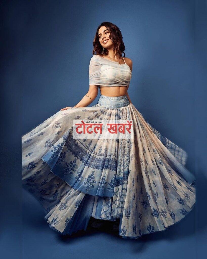 अनुष्का की आदित्य सील से शादी में आकांशा पीच ड्रेस में परफेक्ट ब्राइड्समेड थीं। लेकिन उनकी मेहंदी पोशाक ने सारा ध्यान चुरा लिया – एक ताज़ा और मजेदार सफेद और नीला लहंगा!