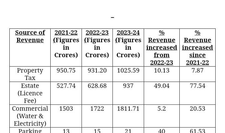 एनडीएमसी ने वित्त वर्ष 2023-24 में अपने विभिन्न राजस्व स्रोतो जैसे संपत्ति कर, लाइसेंस शुल्क, वाणिज्यिक राजस्व (पानी और बिजली) और पार्किंग शुल्क से कुल 3795.30 करोड़ का राजस्व एकत्र किया है।