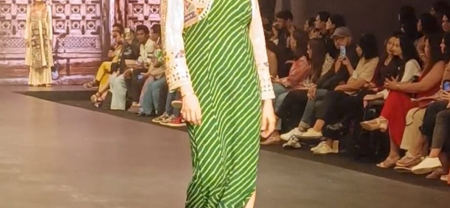 फिल्ममेकर ने वुमनहुड को गले लगाने वाले अपने स्पेशल क्यूरेटेड शो के लिए किआयो की ओपनिंग की। जब अरोरा प्रतिष्ठित रैंप पर चलीं तो उन्हें पाइन ग्रीन बांधनी ड्रेस के साथ हैवी क्रॉप्ड हैंडक्राफ्टेड खाटवर्क पहने देखा गया। डिज़ाइन में वेस्टर्न रंगों के साथ एथनिक फैशन को शामिल किया गया था, जिसमें सॉफ्ट मेकअप लुक उनके खूबसूरत आउटफिट को कॉम्प्लीमेंट कर रहा था। इस पहल के माध्यम से, प्रेरणा अरोड़ा कॉन्शियस फैशन को बढ़ावा देती हैं और लोकल कारीगरों के लिए अपना समर्थन देने का वादा करती हैं।