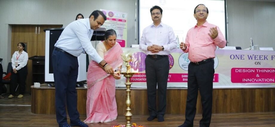 दिल्ली विश्वविद्यालय के उधमोध्या फाउंडेशन के दूसरे एफडीपी कार्यक्रम का आयोजन महात्मा हंसराज महाविद्यालय टीचर ट्रेनिंग सेंटर के सहयोग से मंगलवार को विश्वविद्यालय के महर्षि कनाद भवन में आयोजित किया गया। कार्यक्रम का उद्घाटन दिल्ली विश्वविद्यालय के कुलपति प्रो. योगेश सिंह ने किया। इस अवसर पर संबोधित करते हुए प्रो. योगेश सिंह ने कहा कि युवाओं को भविष्य में नौकरी चाहने वालों की अपेक्षा नौकरी देने वाले बनना है। उन्हें ऐसा बनाने के लिए शिक्षकों में नवीन मूल्यांकन प्रथाओं को विकसित करना आवश्यक है।
