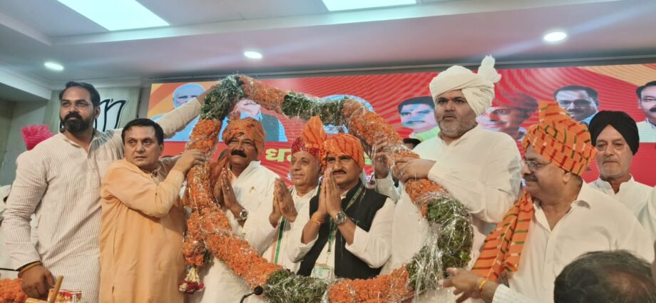 प्रदेश भाजपा किसान मोर्चा अध्यक्ष विनोद सहरावत द्वारा आयोजित इस अभिनंदन समारोह में राजस्थान के प्रदेश अध्यक्ष भगिरथ चौधरी को कृषि राज्य मंत्री और छत्तीसगढ़ के किसान मोर्चा प्रदेश अध्यक्ष तोखन साहू को शहरी विकास राज्य मंत्री बनाए जाने पर स्वागत किया गया। इस मौके पर किसान मोर्चा के राष्ट्रीय अध्यक्ष राजकुमार चाहर का भी स्वागत किया गया। इस मौके पर प्रदेश संगठन महामंत्री पवन राणा उपस्थित थे।