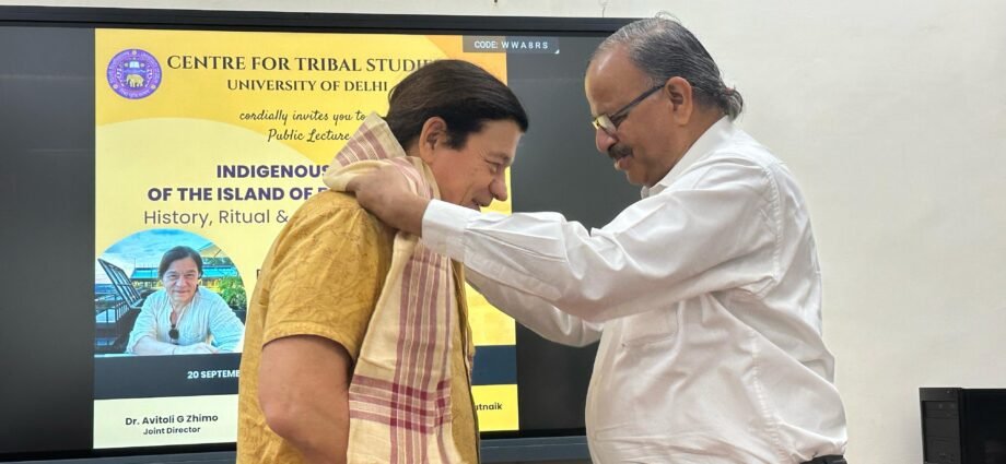 डॉ. अवितोली जी झिमो (संयुक्त निदेशक, सीटीएस) ने बताया कि यह व्याख्यान पूरे भारत में प्रसारित किया गया और भविष्य के संदर्भ के लिए दृश्य मानव विज्ञान प्रयोगशाला में संग्रहीत भी किया गया। उन्होंने बताया कि यह कार्यक्रम आदिवासी अध्ययन केंद्र के स्वदेशी और भारतीय सांस्कृतिक परंपराओं के अंतर्संबंधों पर चल रहे शोध का हिस्सा है। मानव विज्ञान विभाग के पीसी बिस्वास हॉल में आयोजित इस कार्यक्रम में कई शिक्षाविद, संकाय सदस्य, शोधकर्ता और विद्यार्थी उपस्थित रहे।