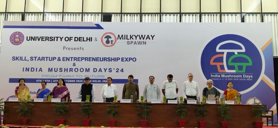 इस “कौशल, स्टार्टअप और उद्यमिता एक्सपो एवं इंडिया मशरूम डेज़ 2024” का आयोजन दिल्ली विश्वविद्यालय के स्कूल ऑफ ओपन लर्निंग, कैंपस ऑफ ओपन लर्निंग, डिपार्टमेंट ऑफ डिस्टेंस एंड कंटीन्यूइंग एजुकेशन, शहीद राजगुरु कॉलेज ऑफ एप्लाइड साइंसेज फॉर वीमेन, स्किल एनहांसमेंट कोर्सेज कमेटी, उधमोदय फाउंडेशन और इंडस्ट्री पार्टनर मिल्की वे कंपनी लिमिटेड के सहयोग से किया है। एक्सपो में दिल्ली विश्वविद्यालय और उसके बाहर के विभिन्न कॉलेजों के सहयोग से एक व्यापक प्रदर्शनी का आयोजन भी किया गया, जिसमें प्रत्येक प्रतिभागी द्वारा मशरूम की खेती में अपनी अनूठी प्रगति और कौशल का प्रदर्शन किया गया।