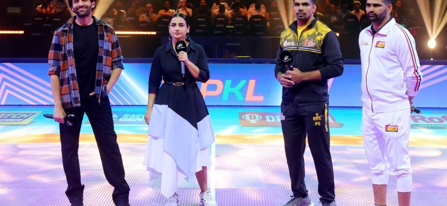 प्रो कबड्डी लीग (पीकेएल) सीजन 11 की सितारों से सजी शुरुआत हुई, जहां बॉलीवुड सेलिब्रिटी विद्या बालन और कार्तिक आर्यन ने तेलुगु टाइटंस और बेंगलुरु बुल्स के बीच उद्घाटन मैच में शिरकत की। अपनी आगामी फिल्म ‘भूल भुलैया 3’ के प्रचार के लिए अभिनेताओं की उपस्थिति ने हैदराबाद के जीएमसीबी इंडोर स्टेडियम में पहले से ही रोमांचक माहौल में ग्लैमर जोड़ दिया।
