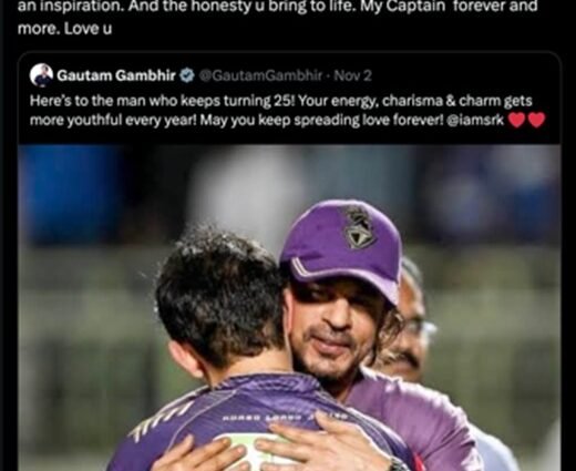 “हमेशा के लिए मेरा कप्तान” – एक्स (ट्विटर) पर शाहरुख खान का गौतम गंभीर को हार्दिक जवाब