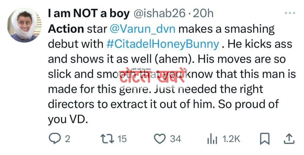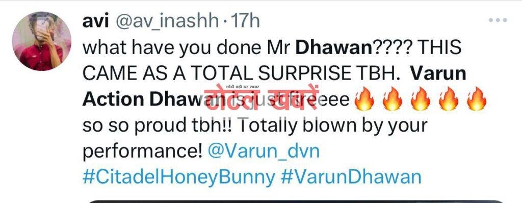 कल सीरीज खत्म होने के बाद से सोशल मीडिया पर धवन के प्रदर्शन पर सकारात्मक प्रतिक्रियाएं आ रही हैं। जबकि एक उपयोगकर्ता ने उल्लेख किया, “एक्शन में वरुण धवन मेरी पसंदीदा शैली है”, एक अन्य ने पोस्ट किया, “वरुण एक्शन धवन बिल्कुल आग है!”