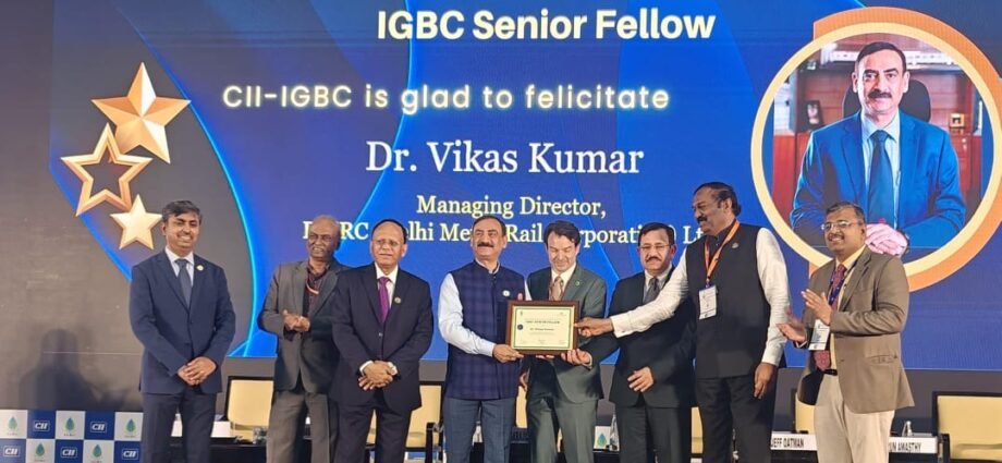 डीएमआरसी के प्रबंध निदेशक डॉ. विकास कुमार को बेंगलुरु में आयोजित 22वीं कांग्रेस में इंडियन ग्रीन बिल्डिंग काउंसिल (आईजीबीसी) द्वारा प्रतिष्ठित आईजीबीसी सीनियर फेलोशिप से सम्मानित किया गया है।