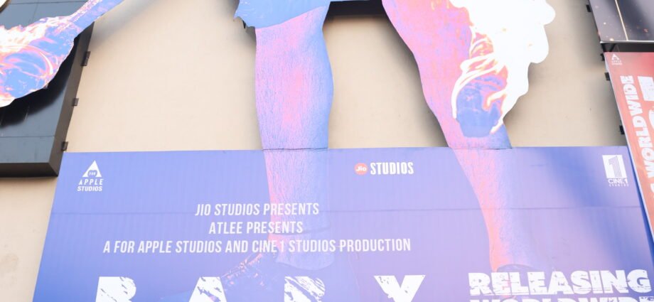 सिने 1 स्टूडियो के वरुण धवन और निर्माता मुराद खेतानी ने फिल्म के प्रचार की शुरुआत करते हुए आज एक सिनेमा हॉल के बाहर बेबी जॉन के 100 फीट के विशाल पोस्टर का अनावरण किया।