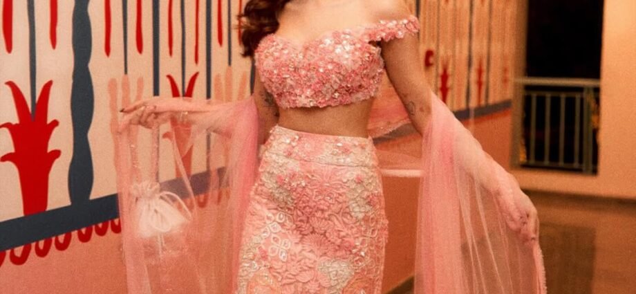ख़ुशी कपूर – ख़ुशी ने ऑफ-शोल्डर ब्लाउज़ के साथ ब्लश पिंक फ्लोरल बॉडीकॉन लहंगा चुना, जो एक सुंदर लेकिन आकर्षक लुक दे रहा है।