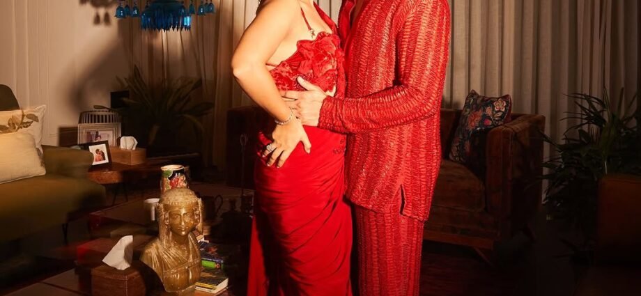 अभिनेता और उनकी पत्नी ने अपने नवीनतम कलेक्शन में राहुल मिश्रा द्वारा डिज़ाइन किए गए हाथ की कढ़ाई वाले क्यूट्योर कुर्ता पायजामा और कोर्सेट गाउन को चुना।