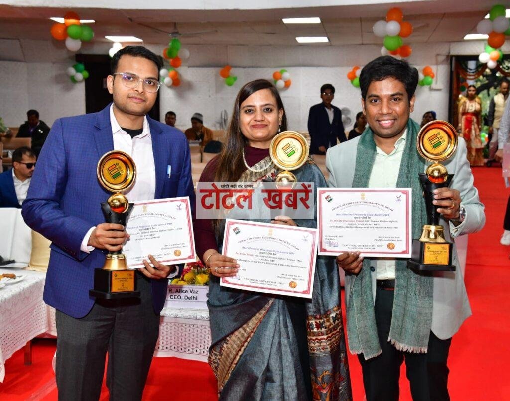तीन जिला निर्वाचन अधिकारियों डॉ. किन्नी सिंह, आईएएस (जिला निर्वाचन अधिकारी-पश्चिम), श्री मेकला चैतन्य प्रसाद, आईएएस (जिला निर्वाचन अधिकारी-दक्षिण) और श्री अमोल श्रीवास्तव, आईएएस (जिला निर्वाचन अधिकारी-पूर्व) को चुनाव प्रबंधन और मतदाता शिक्षा एवं चुनावी भागीदारी, चुनाव प्रबंधन, आईटी पहल, चुनाव प्रबंधन और इनोवेटिव उपायों के लिए सम्मानित किया गया। 02 ईआरओ/एईआरओ को सर्वश्रेष्ठ प्रदर्शन करने वाले ईआरओ/एईआरओ अधिकारी श्रेणी में सम्मानित किया गया। 05 बीएलओ को सर्वश्रेष्ठ प्रदर्शन करने वाले बीएलओ श्रेणी में सम्मानित किया गया। इसके अलावा, सीईओ (मुख्यालय) के 06 अधिकारियों/कर्मचारियों को विशेष श्रेणी का पुरस्कार दिया गया।