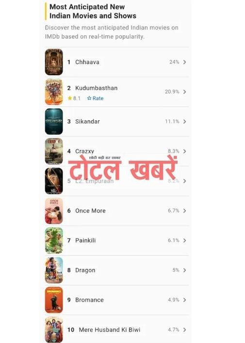 *IMDb की मोस्ट अवेटेड फिल्मों की लिस्ट में सोहम शाह की क्रेजी ने मारी एंट्री, सिकंदर और छावा के साथ हुई टॉप 4 में शामिल