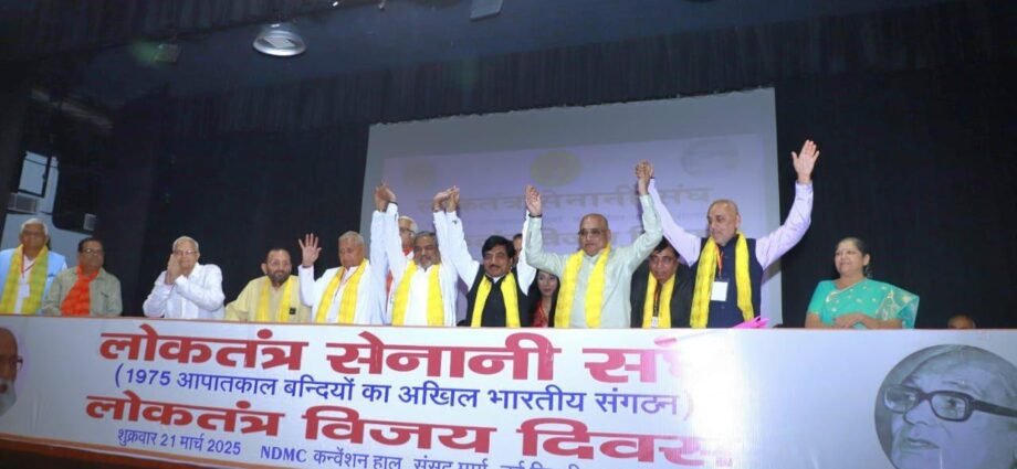 दिल्ली भाजपा अध्यक्ष वीरेंद्र सचदेवा ने आज एनडीएमसी कन्वेंशन सेंटर में 1977 में आपातकाल की समाप्ति दिवस 21 मार्च पर आयोजित लोकतंत्र विजय दिवस कार्यक्रम में 1975 – 77 के आपातकाल सेनानियों को संबोधित किया और उन्हें सच्चा देशभक्त बताया।