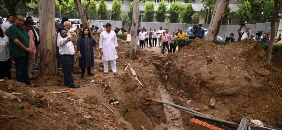 दिल्ली में शुक्रवार को 1901 के बाद मई महीने की दूसरी सबसे अधिक वर्षा दर्ज की गई, जिससे शहर के कई इलाकों में जलभराव की स्थिति बन गई। आगामी मानसून से पहले इस संकट की गंभीरता को देखते हुए दिल्ली सरकार ने त्वरित कार्रवाई की। शनिवार को दिल्ली सरकार के लोक निर्माण मंत्री प्रवेश साहिब सिंह वर्मा ने गोल्फ लिंक क्षेत्र का दौरा कर वहां चल रहे नाले, सीवर लाइन और सम-वेल निर्माण कार्यों का जायज़ा लिया।
