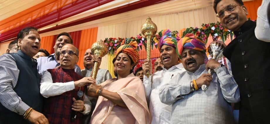 अर्जुन कुमार ने सभी अतिथियों का पटका, स्मृति-चिन्ह और शक्ति का प्रतीक गदा भेंटकर सम्मान किया।
