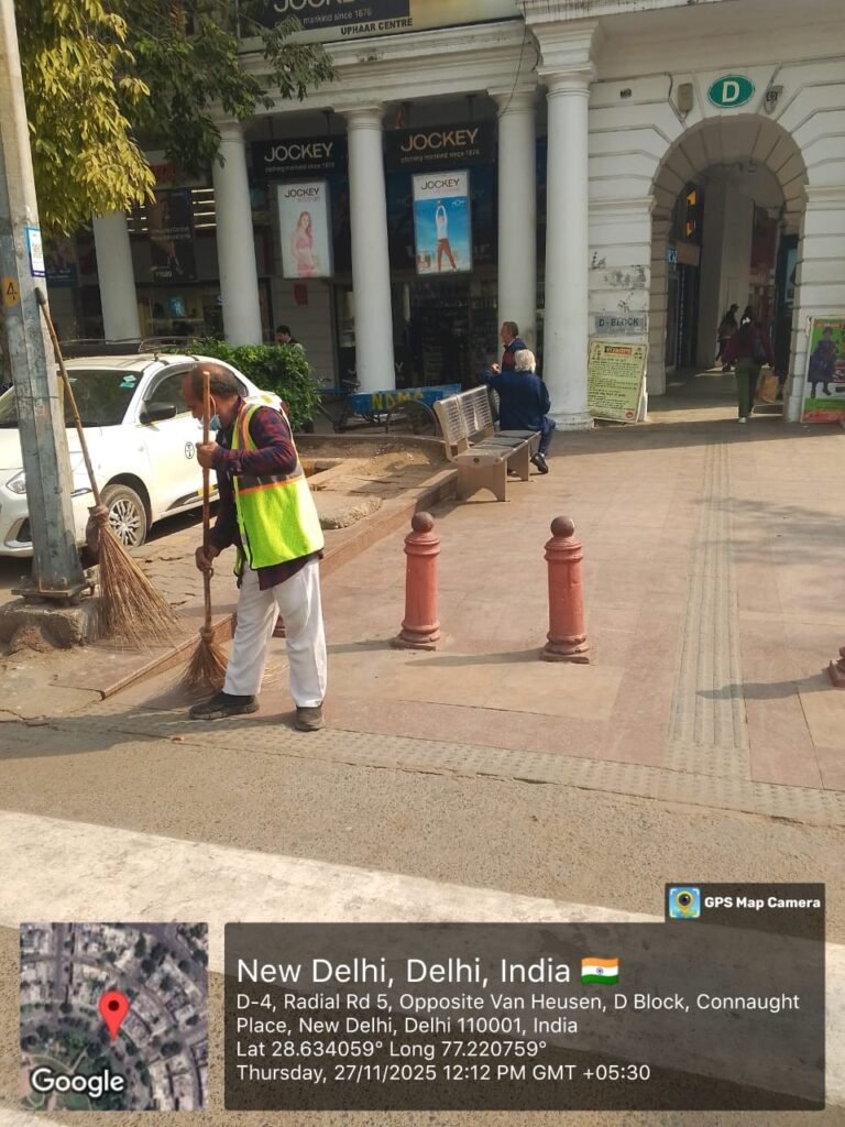 इस सफाई अभियान में, बड़े कमर्शियल एरिया—खासकर कनॉट प्लेस के A ब्लॉक, G ब्लॉक, और अंदरूनी, बीच वाले और बाहरी सर्कल के साथ-साथ आस-पास की रेडियल सड़कों—की अच्छी तरह से सफाई की गई ताकि पब्लिक सैनिटेशन को बेहतर बनाया जा सके और इन ज़्यादा आने-जाने वाले ज़ोन में विज़िटर के अनुभव को बेहतर बनाया जा सके।